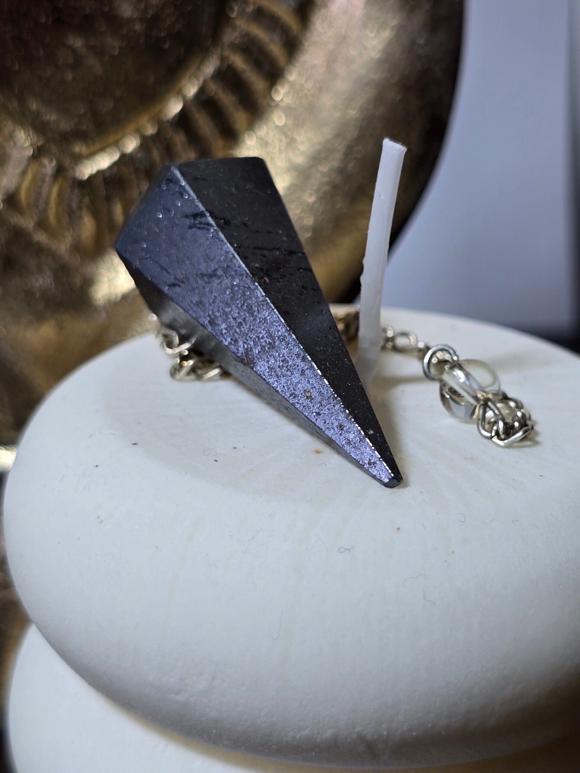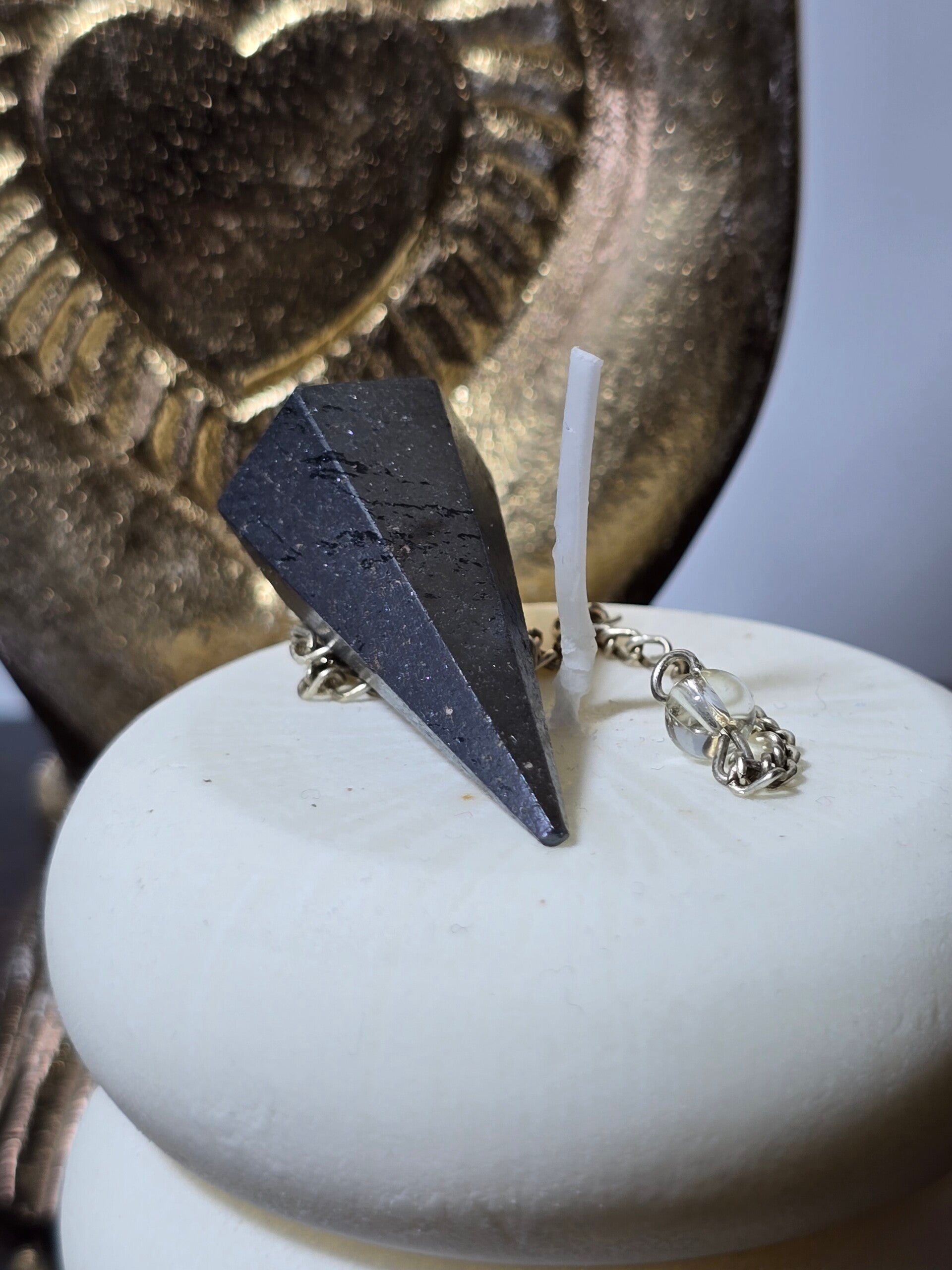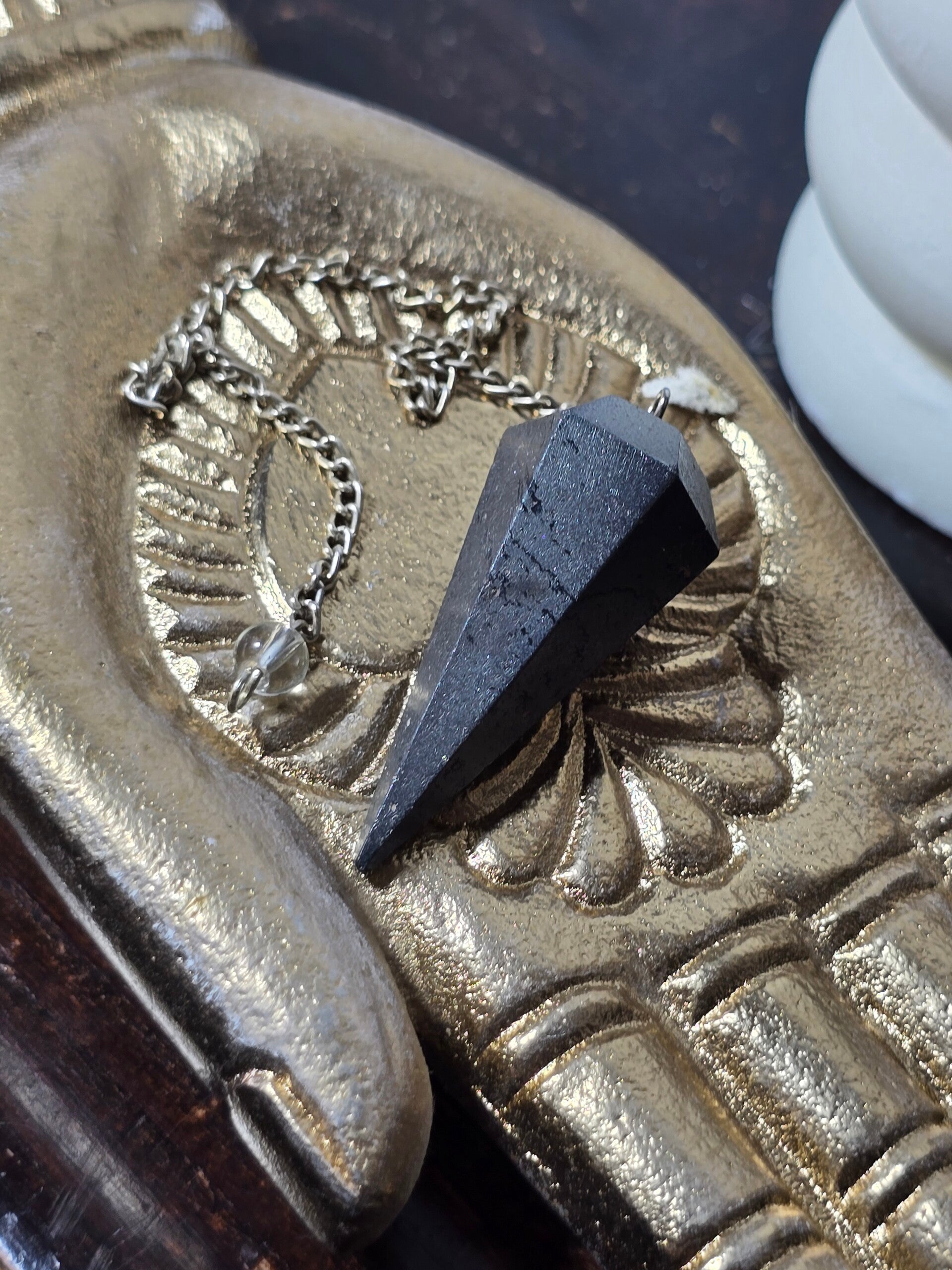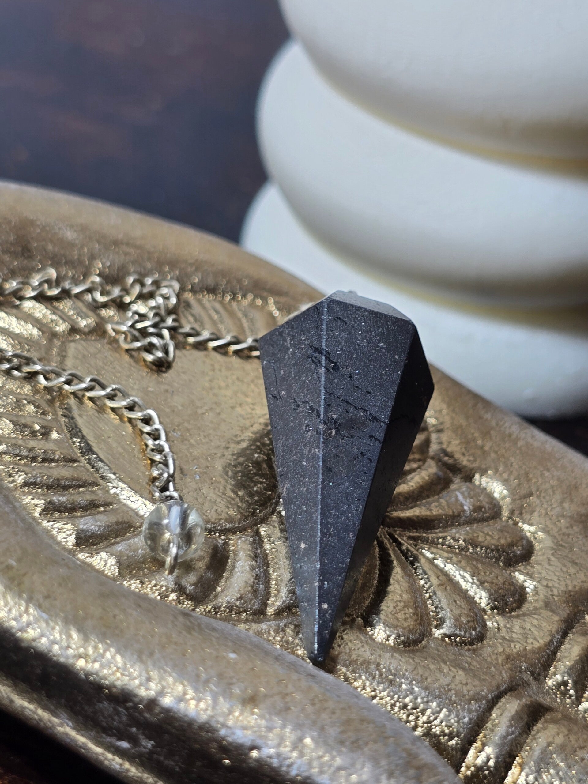 L’ematite è perfetta per chi desidera risposte chiare, mente lucida e forte centratura durante l’utilizzo del pendolo.
